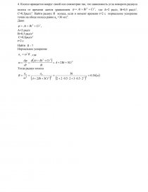4. Колесо вращается вокруг своей оси симметрии так, что зависимость угла поворота радиуса колеса от времени дается уравнением [pic 22] где А=2 рад/с, В=0,5 рад/с2, С=0,5рад/с3. Найти радиус R колеса, если в момент времени t=2 c нормальное ускорение точки на ободе колеса равно an =36 м/с2.