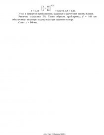Оценивая полученный результат, приходим к выводу, что диаметр трубы, принятый в первом приближении, мал. Это, естественно, привело к увеличению скорости в трубе и общих потерь, которые значительно превысили располагаемый напор.