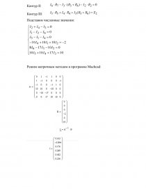- По законам Кирхгофа необходимо составить 6 уравнений. По первому закону Кирхгофа: у-1=4-1=3 независимых уравнений. По второму закону Кирхгофа в-(у-1) =6-(4-1)=3 уравнения для независимых контуров [pic 2] (см.рис. 1), учитывая выбранные направления обхода контуров. Составим уравнения по первому и второму законам Кирхгофа: