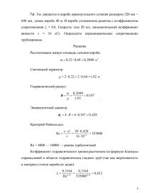 7.6. Газ движется в коробе прямоугольного сечения размером 320 мм × 640 мм, длина короба 40 м. В коробе установлена решётка с коэффициентом сопротивления ξ = 0,8. Скорость газа 20 м/с, кинематический коэффициент вязкости v = 16 cСт. Определите аэродинамическое сопротивление трубопровода.