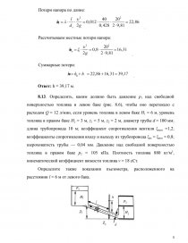 8.13. Определить, каким должно быть давление р1 над свободной поверхностью топлива в левом баке (рис. 8.6), чтобы оно перетекало с расходом Q = 12 л/мин, если уровень топлива в левом баке Н1 = 6 м, уровень топлива в правом баке Н2 = 3 м, z1 = 5 м, z2 = 2 м, диаметр трубы d = 100 мм; длина трубопровода 10 м; коэффициент сопротивления вентиля ξвент =1,2; коэффициенты сопротивления входу и выходу из трубопровода ξвх = ξвых = 0,8; шероховатость трубы — 0,04 мм. Давление над свободной поверхностью топлива в правом баке р2 = 105 кПа. Плотность топлива 880 кг/м3, кинематический коэффициент вязкости топлива v = 18 сСт.