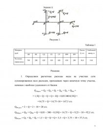 1. Определяем расчетные расходы воды на участках сети сукммированием всех расходов, проходящих через конечную точку участка, начиная с наиболее удаленного от башни.