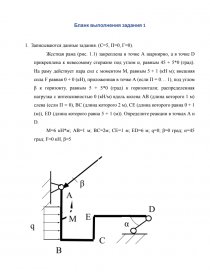 Жесткая рама (рис. 1.1) закреплена в точке А шарнирно, а в точке D прикреплена к невесомому стержню под углом α, равным 45 + 5*0 (град). На раму действует пара сил с моментом M, равным 5 + 1 (кН·м); внешняя сила F равная 0 + 0 (кН), приложенная в точке А (если П = 0… 1), под углом β к горизонту, равным 5 + 5*0 (град) к горизонтали; распределенная нагрузка с интенсивностью 0 (кН/м) вдоль колена АВ (длина которого 1 м) слева (если П = 0), ВС (длина которого 2 м), СЕ (длина которого равна 0 + 1 (м)), ЕD (длина которого равна 5 + 1 (м)). Определите реакции в точках А и D.