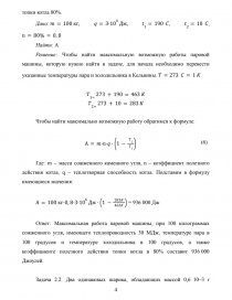Задача 1.36. Какова теоретически возможная максимальная работа паровой машины, если в топке котла, питающего паром машину, будет сожжено 100 кг каменного угла с теплотворной способностью 30 МДж? Температура пара 190°С, температура холодильника 10°С. Коэффициент полезного действия топки котла 80%.