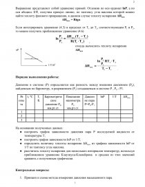 Выражение представляет собой уравнение прямой. Отложив по оси ординат lnP, а по оси абсцисс 1/Т, получим прямую линию, по тангенсу угла наклона которой можно найти теплоту фазового превращения, в данном случае теплоту испарения ΔНисп.
