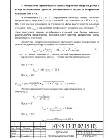 5.Определение гармонического состава напряжения нагрузки, расчет и выбор сглаживающего дросселя, обеспечивающего заданный коэффициент пульсаций при α = αз12