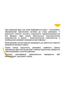 При взаємодії пари та рідини одна група речовин, що складають суміш, переходить переважно у пару (низько киплячі компоненти), а друга – у рідину (високо киплячі компоненти).