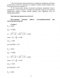 9. По полученным данным рассчитать суммарную трехфазную активную и реактивную мощность нагрузки для первой и второй секций сборных шин.