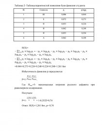 Значения вероятностей появления букв фамилии студента приведены в таблице 2.