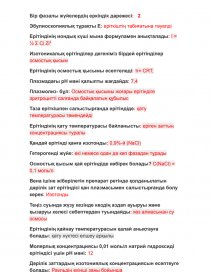 Келесі қасиеттер коллигативті қасиеттерге жатады: а) осмостық қысым; б) еріткіштің қаныққан буының ерітіндіге түсіретін қысымы; в) ерітінділердің қату және қайнау температурасы; г) ерітінділердің иондық күші; д) ерітінділердің буферлік сыйымдылығы; е) рН ерітінділері. а, б, в