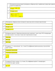 1 | Политроптық процестердегі{изохоралық, избаралық және адиабаталық} процестерге арналған жұмыстың формуласы |