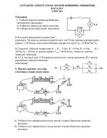«ТҰРАҚТЫ ЭЛЕКТР ТОГЫ» БӨЛІМІ БОЙЫНША ЖИЫНТЫҚ БАҒАЛАУ