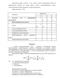 Контрольная работа состоит в том, чтобы сделать обоснованный вывод об эффективности проекта (на основе расчета чистого дисконтированного дохода, соответствующего индекса доходности и срока окупаемости).