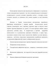 Колір харчових продуктів грає важливу роль в формуванні як органолеп- тичних показників якості продукту , так і його споживчій цінності та конкурент- носпроможності, оскільки споживач традиційно пов'язує з кольором ступінь готовності продукту до вживання, його смакові переваги та інші показники якості.