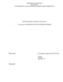 по дисциплине «ФИЗИЧЕСКАЯ И КОЛЛОИДНАЯ ХИМИЯ»