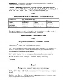 Цель работы: Ознакомиться с методами получения оксидов, кислот, оснований (щелочей), солей и изучить их свойства.