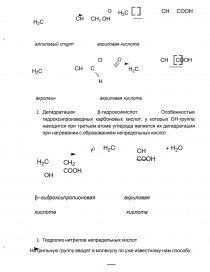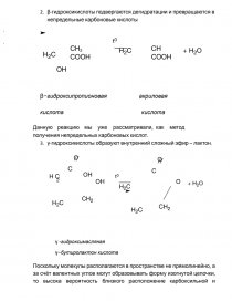 - Дегидратация β-гидроксикислот. Особенностью гидроксипроизводных карбоновых кислот, у которых ОН-группа находится при третьем атоме углерода является их дегидратация при нагревании с образованием непредельных кислот.[pic 66]