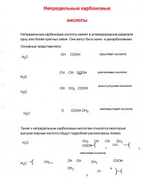 Непредельные карбоновые кислоты имеют в углеводородном радикале одну или более кратных связи. Они могут быть моно- и дикарбоновыми.