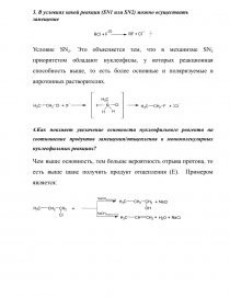 Условие SN2. Это объясняется тем, что в механизме SN2 приоритетом обладают нуклеофилы, у которых реакционная способность выше, то есть более основные и поляризуемые в апротонных растворителях.