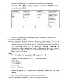 - Провести статобробку за допомогою статистичного коефіцієнта Стьюдента (t= 2,92 для вибраної довірчої вірогідності P=0,90 та числа ступеней свободи f=3):