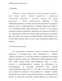 Изобутилен - сырье, необходимое для выпуска изопрена, который, в свою очередь, является основным компонентом в производстве синтетических изопреновых и бутиловых каучуков. Они широко применяются в шинной промышленности. Изобутилен в ПАО «Нижнекамскнефтехим» в основном используется в производстве следующих продуктов: бутил- и галобутилкаучука (с суммарной мощностью 220 000 т в год); метилтретбутилового эфира (мощностью 124 000 т в год); изопрена методом конденсации изобутилена и формальдегида (мощностью 300 000 т в год). Производство изобутилена третьей марки реализовано на установках БК-2, ДБ-2, ИФ-2 и И-2 мощностью 90 000, 100 000, 160 000 и 90 000 т в год, соответственно. Каждый объект состоит из двух независимых параллельных блоков [1].