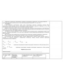 Часть 2. Определение концентрации раствора щелочи методом титрования Оборудование и посуда: Реактивы: Задание: Определить нормальную концентрацию (молярную концентрацию эквивалента) для раствора NaOH № …… титрованием раствором соляной кислоты с известной концентрацией Снорм.(HCl) = 0,1 моль-экв./л. Ход работы В три конических плоскодонных колбы (колбы Эрленмейера) поместите отмеренные пипеткой Мора определенные объемы раствора щелочи, концентрацию которого необходимо определить, например, по 10 мл. Для заполнения раствором пипетки Мора следует пользоваться резиновой грушей. Добавьте в конические колбы по несколько капель индикатора, меняющего цвет при переходе от щелочной среды к кислотной. Так можно зафиксировать момент полной нейтрализации раствора щелочи раствором кислоты. В качестве такого индикатора может быть выбран, например, метилоранж. Из бюретки по каплям добавляйте в колбы с раствором щелочи раствор кислоты, концентрация которой точно известна. Титрование продолжайте до тех пор, пока не произойдет полная нейтрализация, фиксируемая по изменению цвета индикатора. При достижении точки эквивалентности (изменению цвета индикатора) титрование прекращают и определяют объем израсходованной кислоты. Определение повторяют 3 раза (до получения сопоставимых результатов). По результатам трех определений найдите среднее арифметическое значение объема раствора кислоты и, учитывая, что вещества реагируют в эквивалентных количествах, найдите искомую величину нормальной концентрации щелочи по формуле: [pic 2]= [pic 3], где: [pic 4]- нормальная концентрация (молярная концентрация эквивалента) и объем раствора щелочи, [pic 5] - нормальная концентрация (молярная концентрация эквивалента) и объем раствора кислоты. Обработка результатов Уравнение реакции ______________________________________________________________________