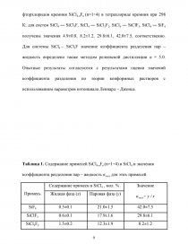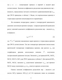 Цель данной работы было теоретическое и экспериментальное определение значений коэффициентов разделения при равновесии жидкость – пар для систем SiCl4 ― SiCl3F, SiCl4 ― SiCl2F2, SiCl4 ― SiClF3, SiCl4 ― SiF4.