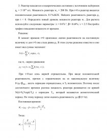 2. В критический реактор c мощностью 10 Вт без источника нейтронов в момент t=0 введена положительная реактивность (ρо/β). В приближении одной группы запаздывающих нейтронов найдите мощность реактора в квазистационарном состоянии (скачок на мгновенных нейтронах) и асимптотический период удвоения мощности реактора дляρо/β=0.35. Принять λ= 0.1 с-1 .
