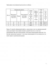 Реактивы и материалы: раствор тиосульфата натрия (Na2S2O3), вода (H2O), серная кислота (H2SO4).