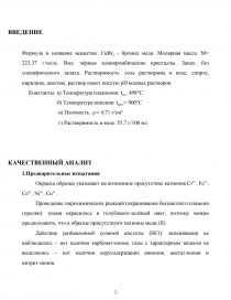 Формула и название вещества: CuBr2 - бромид меди. Молярная масса: М= 223,37 г/моль. Вид: чёрные клиноромбические кристаллы. Запах: без специфического запаха. Растворимость: соль растворима в воде, спирте, пиридине, ацетоне, раствор имеет кислую pH водных растворов.