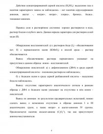 Действие концентрированной серной кислоты (H2SO4): выделения газа и наличия характерного запаха не наблюдалось – нет наличия серусодержащих анионов, ацетат -, нитрит-, нитрат-, хлорид-, бромид-, йодид-, тиоцианат-анионов.