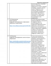 3 | Е.В.Терещенкова М.Ф.Сорокина Цифровая трансформация в образовании: Проблемы и перспективы https://www.elibrary.ru/item.asp?id=44911401 | В статье рассмотрен вопрос развития цифровых технологий и цифровых средств, использование их для управления образовательным процессом, для доступа к практически неограниченному объему вариативных цифровых учебных и методических материалов, применение адаптивных механизмов и цифровых учебных сред. |