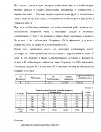При этом необходимо учитывать, что из-за ремонтных работ временно нет возможности перевозить муку с некоторых складов в некоторые хлебопекарни. В табл. 1 это показано в графе «Запрет перевозки» в формате № склада x № хлебопекарни. Например, «2x3» обозначает, что нельзя перевозить муку со склада № 2 в хлебопекарню № 3.
