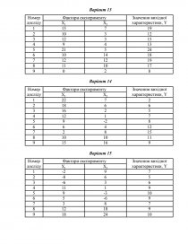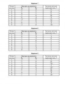 Мета: ознайомитися з методами планування експерименту. За допомогою регресійного аналізу знайти за результатами експерименту зв'язок між вихідною характеристикою (відгуком) та чинниками, що на неї (нього) впливають.