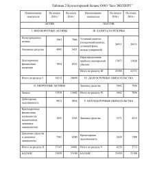 Таблица 2 Бухгалтерский баланс ООО “Бел-ЭКСПЕРТ’’