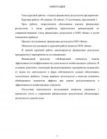 На тему: Анализ финансовых результатов организации