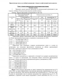 Практическая часть по учебной дисциплине «Анализ хозяйственной деятельности»