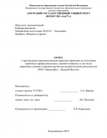 Цель составления отчета по производственной практике – анализ финансовой деятельности общества с ограниченной ответственностью «Транснефть – Дальний Восток».