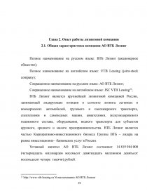 2.3. Эффективность деятельности компании АО ВТБ Лизинг...………..28