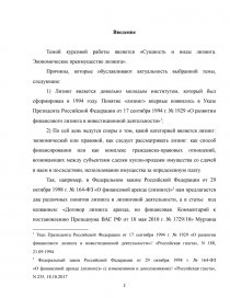 Темой курсовой работы является «Сущность и виды лизинга. Экономическое преимущество лизинга».