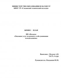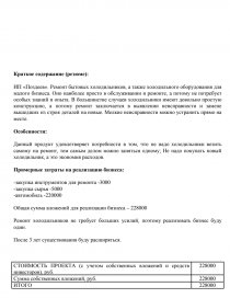 Бизнес-план Оказание услуг по ремонту и обслуживанию холодильников
