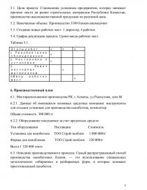 5.1. Цели проекта: Становление успешным предприятим, которое занимает прочное место на рынке строительных материалов Республики Казахстан, производство высококачественной продукции по разумной цене.