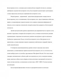 Второй уровень – нормативный – представлен федеральными стандар-тами по бухгалтерскому учету и положениями о бухгалтерском учете, пред-ставляющие собой свод правил, устанавливающих порядок ведения учета, правила отражения информации об объектах учета и перечень показателей, который должны быть раскрыты в бухгалтерской отчетности.