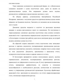 Денежные средства выдаются в подотчет по расходным кассовым ордерам и должны расходоваться строго по назначению. По полученным и израсходованным денежным средствам подотчетные лица должны составить авансовый отчет с приложением оправдательных документов и представить их в бухгалтерию в течении трех рабочих днем после окончания срока, на который выданы денежные суммы под отчет.