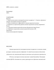 Объектом исследования в курсовой работе выступает монетарная политика в современной Российской Федерации, её механизмы, тенденции и реформы в данной сфере.