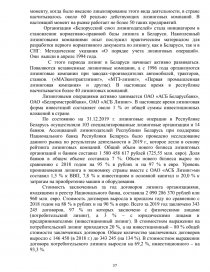 The research and development: study the theoretical foundations and its historical aspects of leasing; analysis of the leasing portfolio of JSC lizing, the necessity of development of leasing at the present stage of economic development of Belarus, developed the basic directions of improvement and the development of leasing in our country.