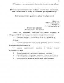 2.1 Згідно з замовленням клієнта необхідно скласти лист – замовлення, лист – зобов’язання та договір на виконання аудиторських послуг 22