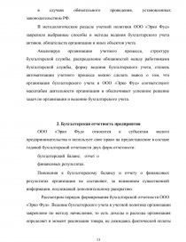 ООО «Эрко Фуд» ведет бухгалтерскую и статистическую отчётность. Бухгалтерский учёт на предприятии ведется в соответствии с едиными методологическими основами и правилами, установленными Законом «О бухгалтерском учёте», положениями по ведению учёта и отчётности в РФ, регулирующими порядок учёта различных объектов бухучёта, Планом счетов бухгалтерского учёта.