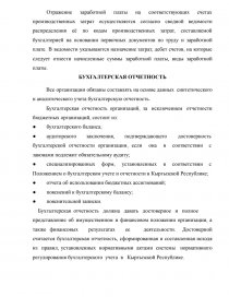 В своей деятельности бухгалтерия опирается на Закон Кыргызской Республики о бухгалтерском учете, Постановление Правительства КР за №231 от 07.10.2010 г. «О вопросах ведения бухгалтерского учета и финансовой отчетности в Кыргызской Республике субъектами предпринимательства, некоммерческими организациями (за исключением бюджетных учреждений)» и другие нормативно-правовые акты КР.