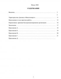 Введение…………………………………………………………………………... Характеристика филиала «Минскэненрго»...............................................…….. Проделанная в ходе практики работа...……………………………………….... Нормативная правовая база функционирования организации……………..... Заключение……………………………………………………………………….. Приложение А……………………………………………………………………. Приложение Б……………………………………………………………………. Приложение В……………………………………………………………………. Приложение Г……………………………………………………………………. Приложение Д……………………………………………………………………. | 3 5 11 13 16 17 18 19 20 21 |